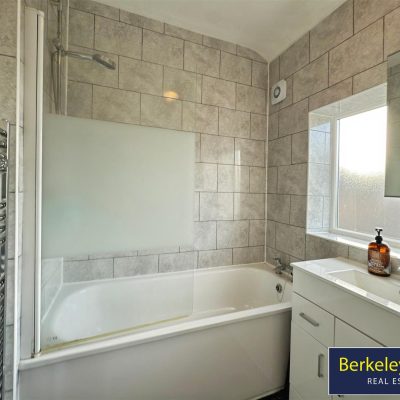 To the first floor, the modern family bathroom was installed just two years ago and is finished to a stylish standard, complete with a full-size bath, overhead shower and built-in storage. There are two generous double bedrooms, one to the front and one to the rear, either of which could comfortably serve as the main bedroom. The third bedroom is a well-proportioned single, typical of a property of this era, offering space for a bed, wardrobe and desk or dressing table.