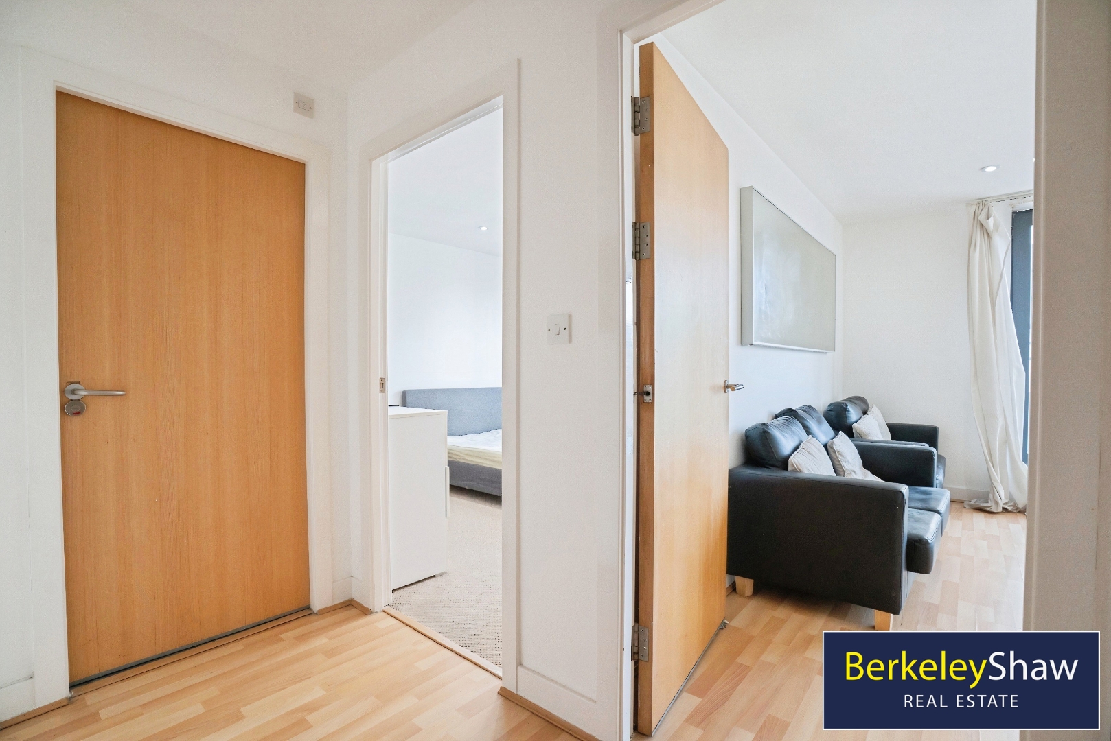 Entrance hall leading to bedroom, bathroom, and lounge/kitchen