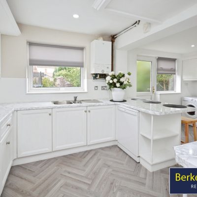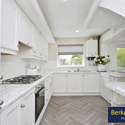 The ground floor features two reception rooms, including an open-plan living space that provides flexible areas for seating and day-to-day family use. A second reception room, set as a conservatory with access to the garden, offers an additional area for relaxing or entertaining. The kitchen benefits from good natural light and provides dining space, making it suitable for family meals.